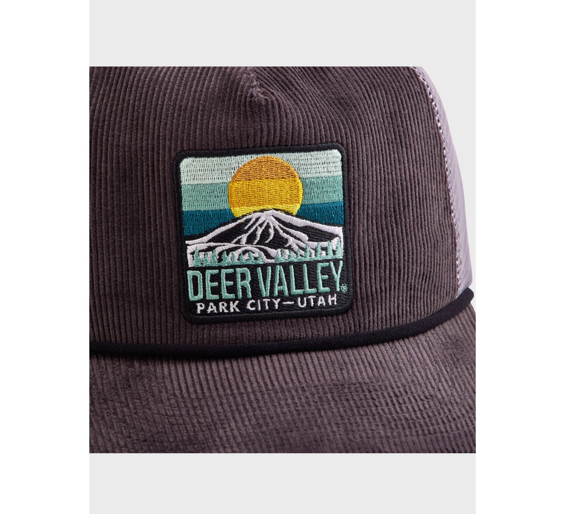 The Bald Mt. Sunrise Corduroy Trucker combines that rugged mountain feel with the luxury Deer Valley finish. High quality corduroy fabric, accented with a rope embellishment creates a stylish, yet comfortable fit. Featuring an embroidered front patch with a breathable mesh back to keep you cool no matter the weather. An adjustable snapback strap creates ideal comfort.