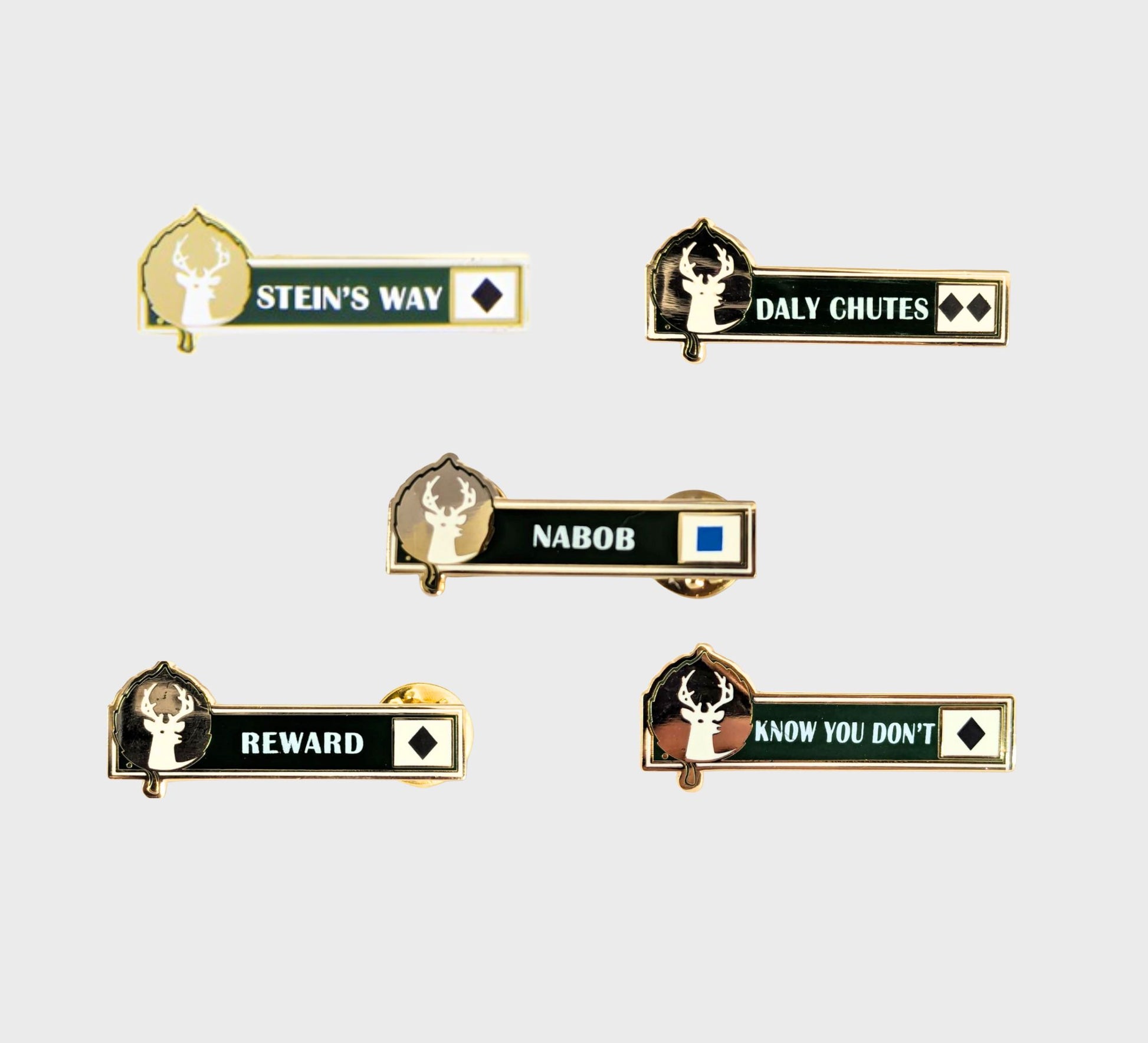 Conquered Stein's Way for the first time? Felt 'success' on Success? Choose the replica trail sign pin to wear as your badge of honor. These pins are also a great way to remember your day on the slopes. Collect them all!